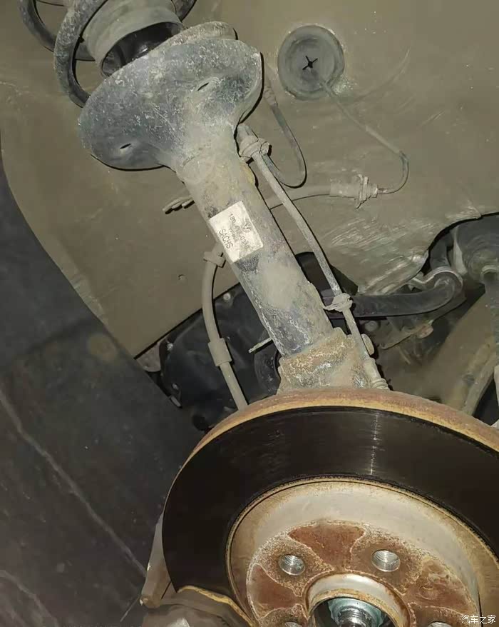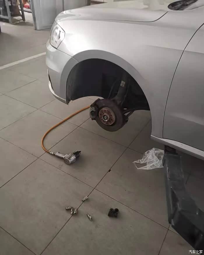 拆掉过程中,有个小插曲,右后的轮胎的螺丝卸下后,论胎始终拿不下来,如上图,后来发现是生锈的原因,在安装新轮胎前,工作人员特意处理了一下,防止以后自己**时不容易(赞一个,替客户着想)
