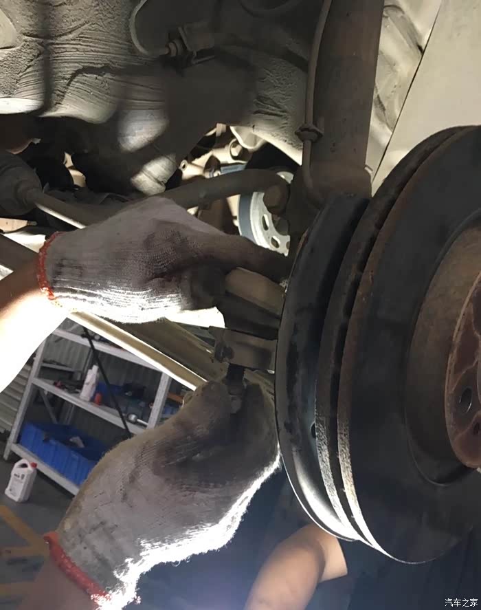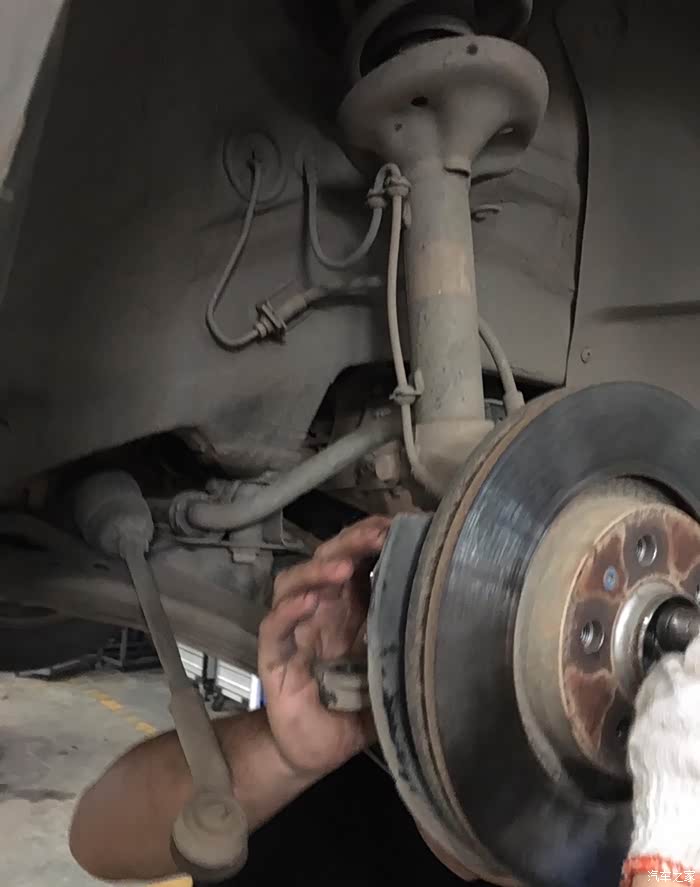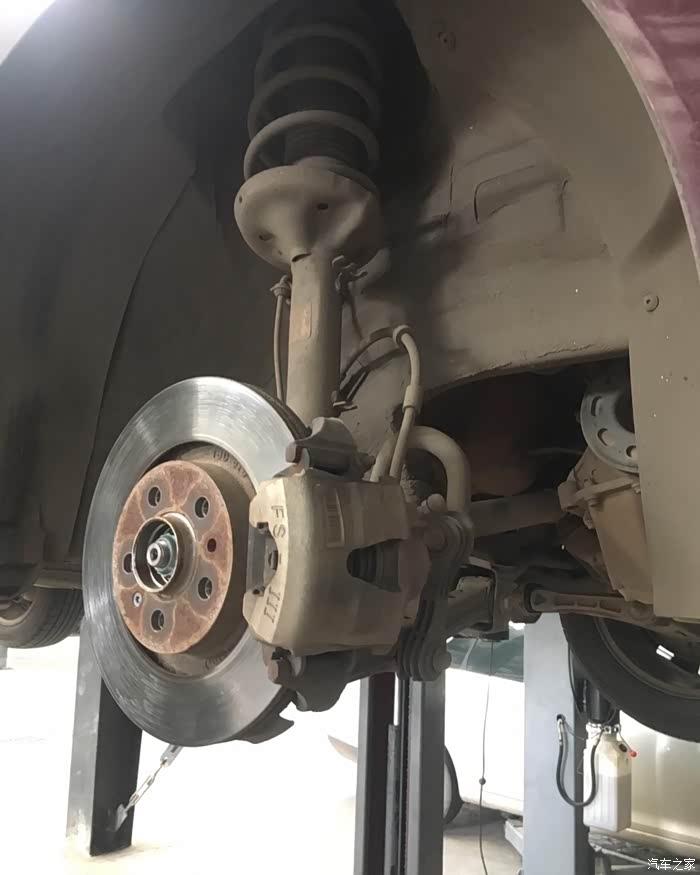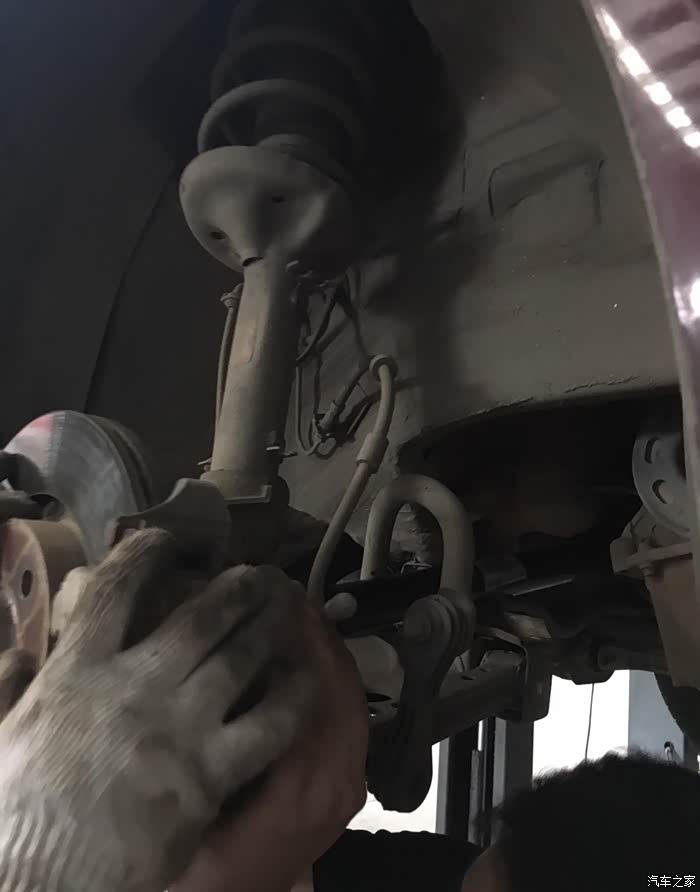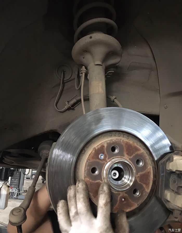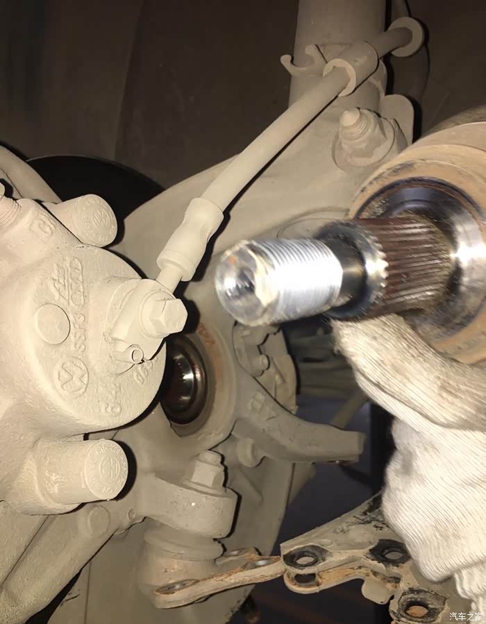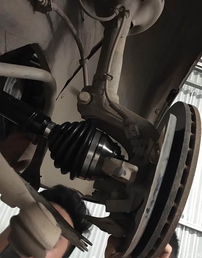 同时需要拆卸悬挂摆臂螺丝(本人非专业人士,叫法可能有误) 这时就可以把刹车盘这边拉出来啦,漏出了传动轴。