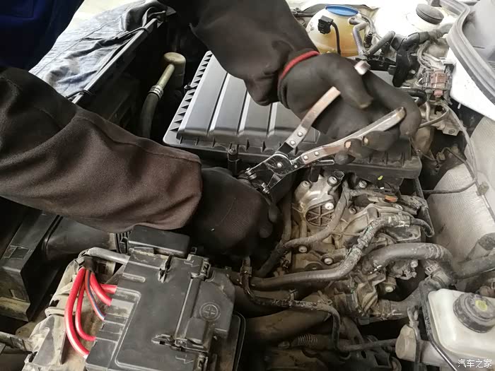 维修师傅动作麻利,还没来得及拍照,空气滤清器就已经拆卸掉了。