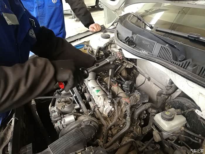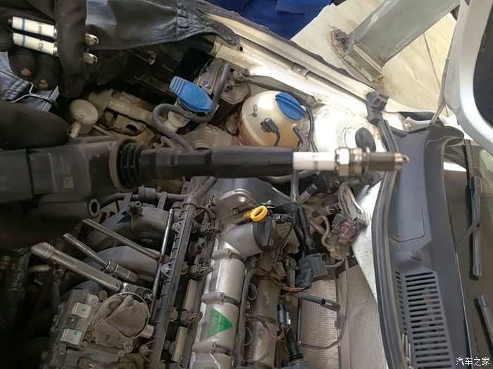 所有火花塞松掉后,用点火线圈吸出发动机缸体内的火花塞。