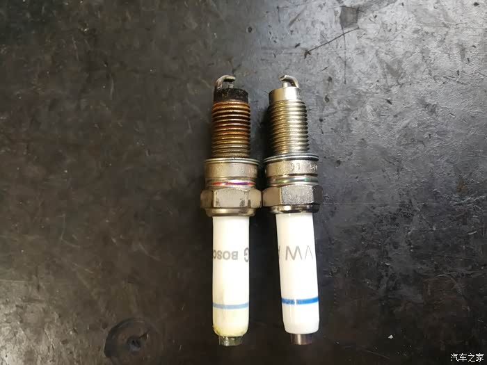 新旧火花塞对比。没有对比就没有伤害。点火位置积碳很多。