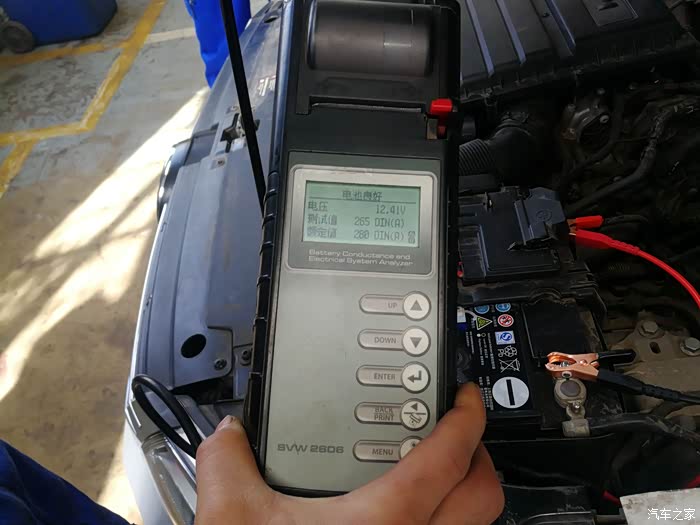 免费进行常规检测。电瓶电压12.4V。用了近六年蓄电池风采依旧。
