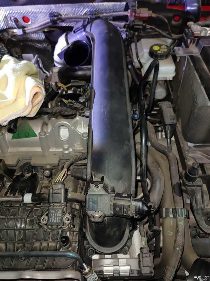 因为拆了进气管,节气门就露出来了,看上去还干净,这次没准备洗节气门的东西,下次再洗它吧。