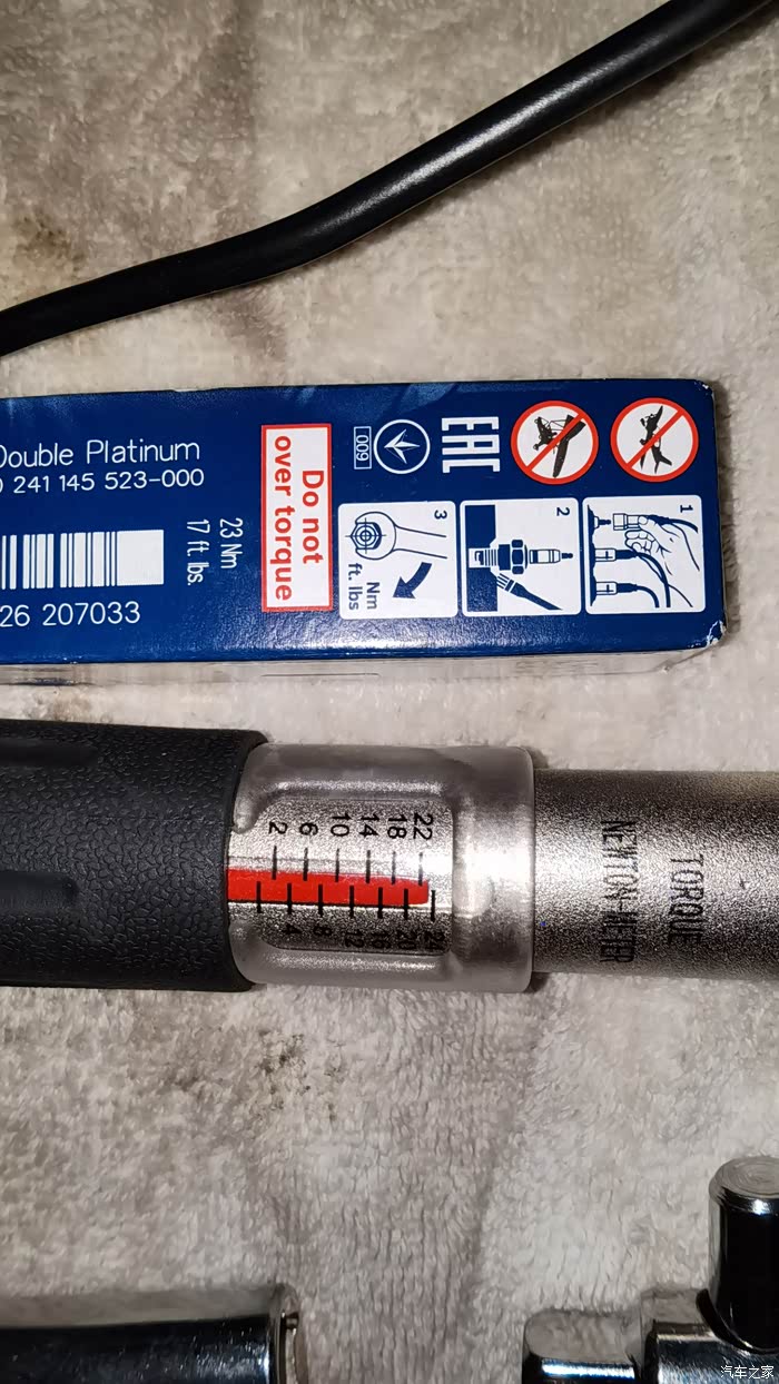 自行车用的小号扭力扳手,拧火花塞将将够用。