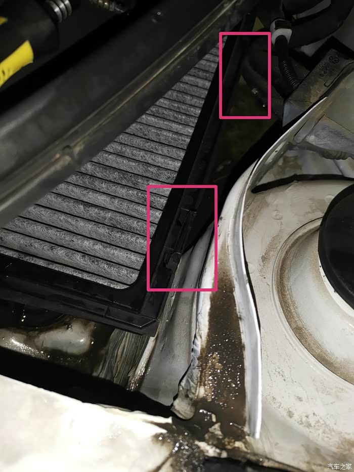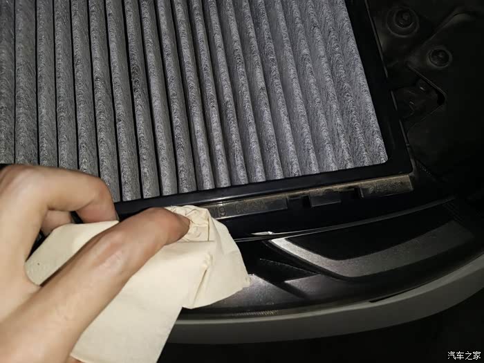 空调滤芯的盖子也擦一下,装的时候要注意卡子的位置,和拆开的时候相反,要先对齐再轻轻的往里推。
