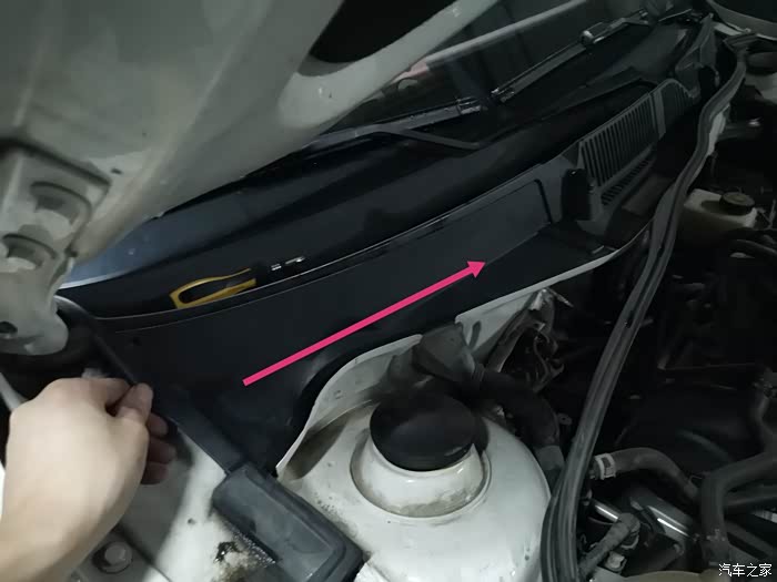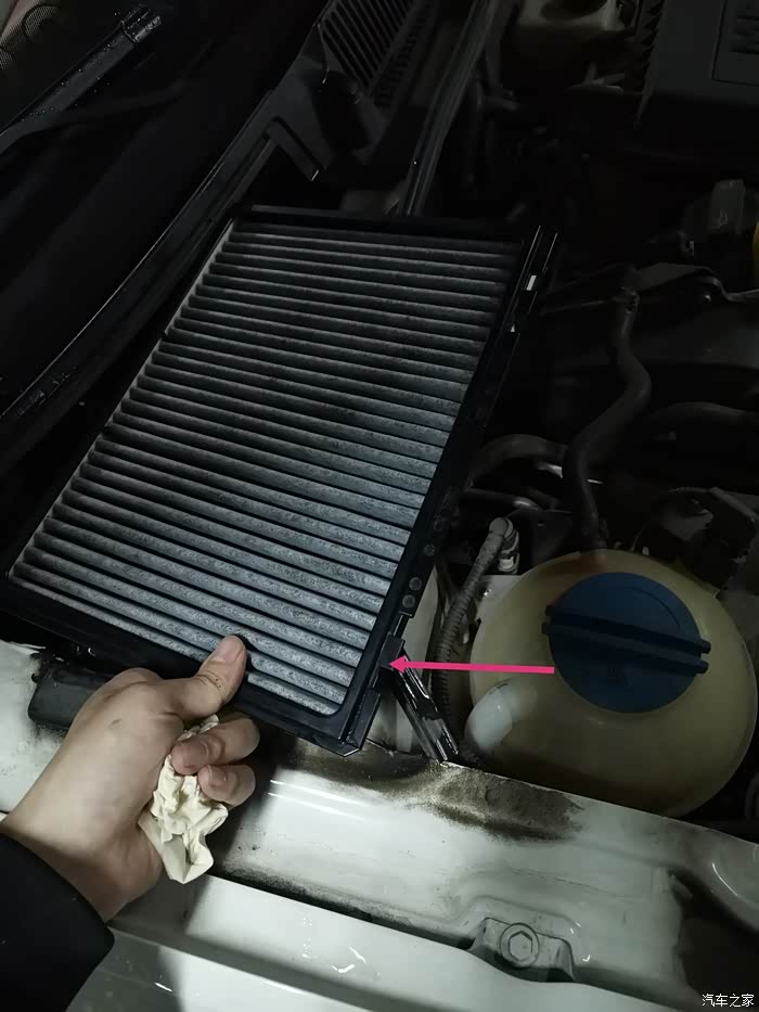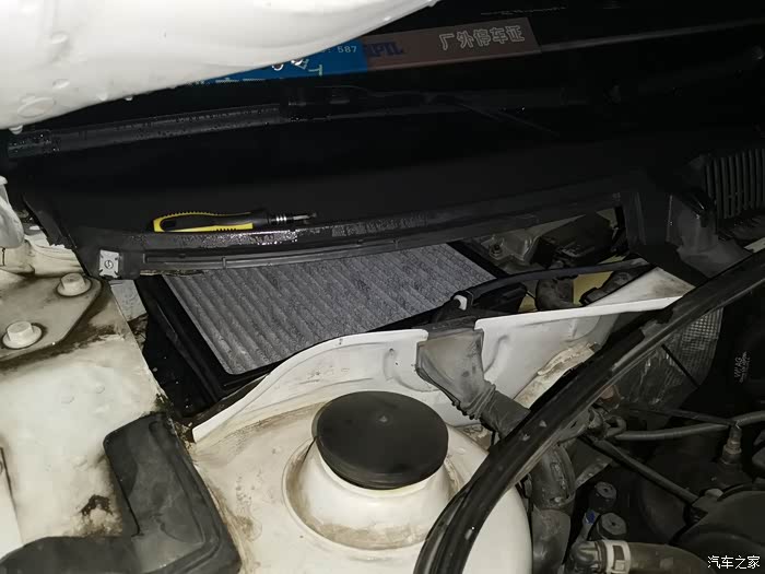 打开发动机舱,空调滤芯的位置就在副驾驶前面。
