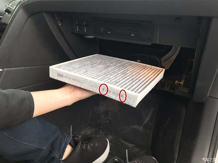 换滤芯的区域在副驾的手套箱位置,要把手套箱整个拆出来才能更换