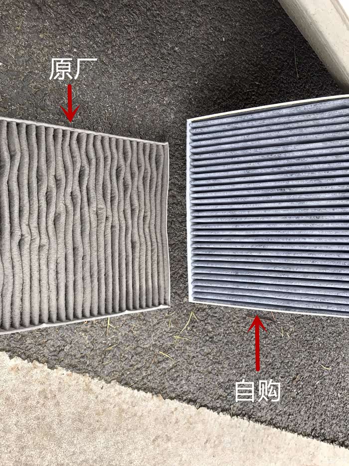 拿出来了,我们可以对比下~左边是原厂的,吸了很多灰,膨胀了~右边是自购的,还是瘦瘦滴,准备上岗了~