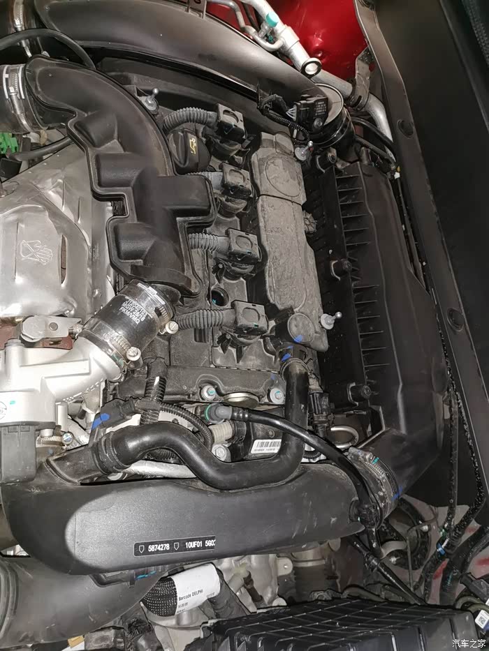 发动机盖板拿下来的样子,发动机点火线圈,完美展现在眼前