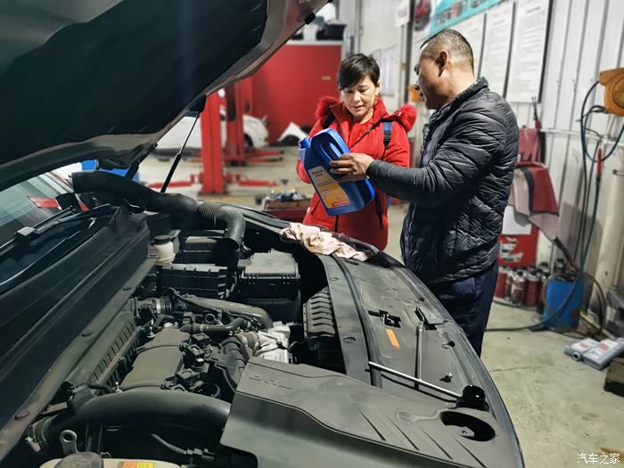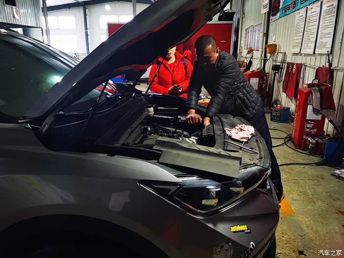 刘师傅仔细认真的检查车辆,拆除滤芯。