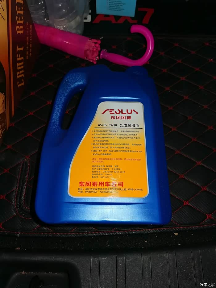 用的风神原厂的0W-30的机油,标注的是合成机油。