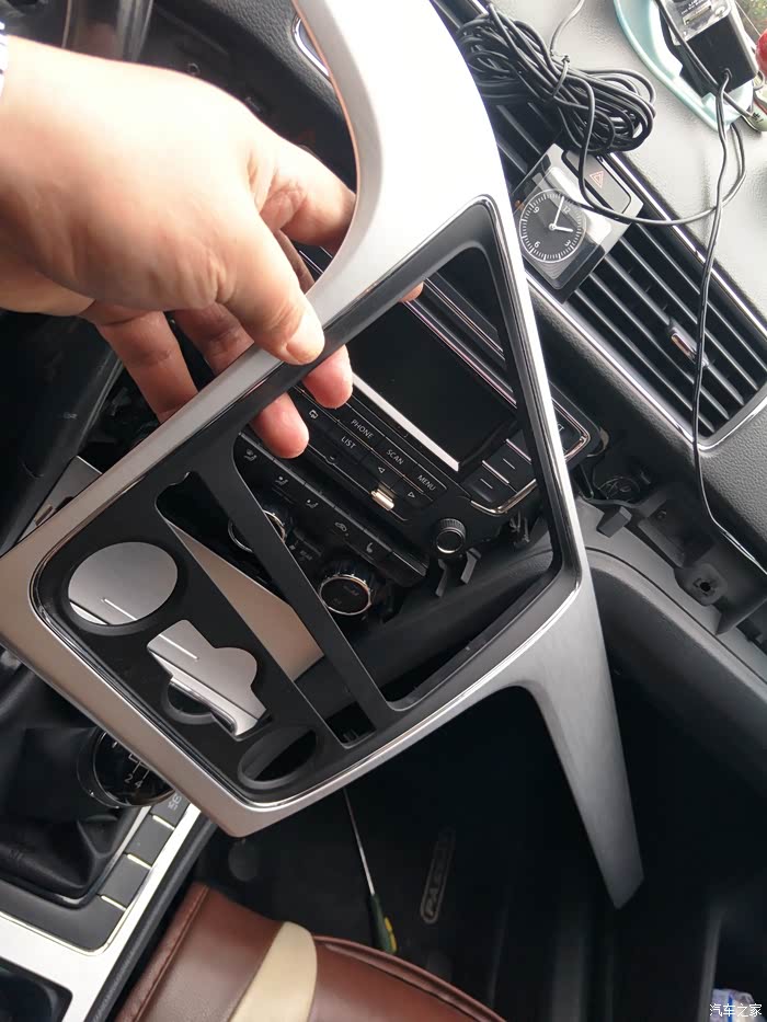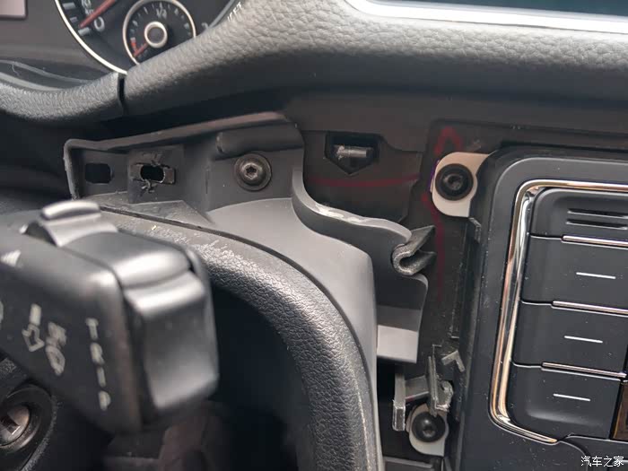 拆开支臂装饰罩顺里面线路穿下来,拆这个的时候要小心,这个卡子太弱不禁风,虽然小心再小心,四个还是坏了一个。