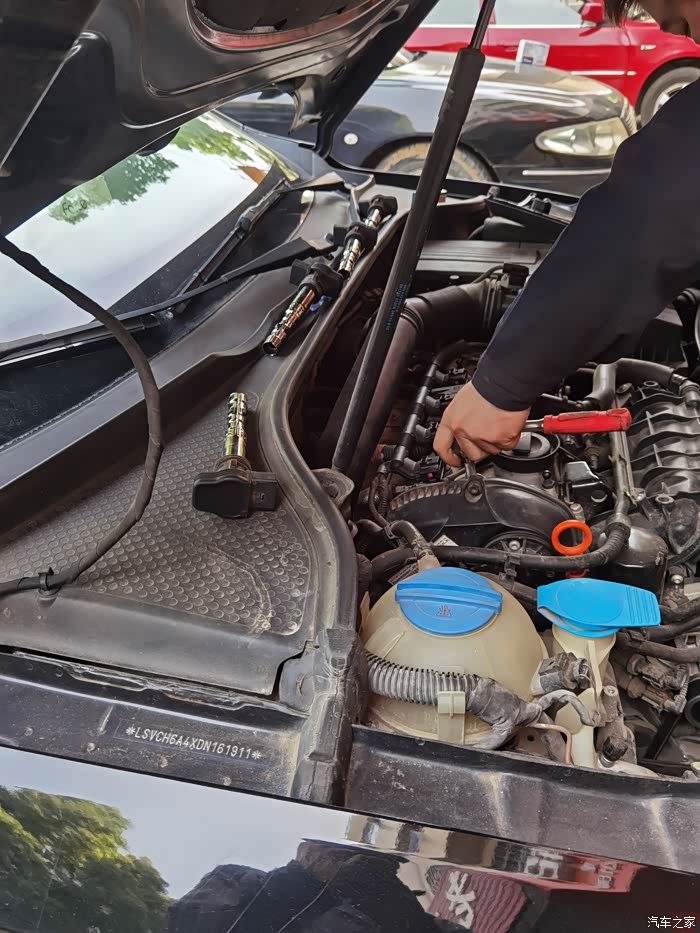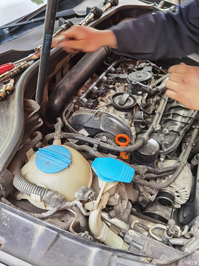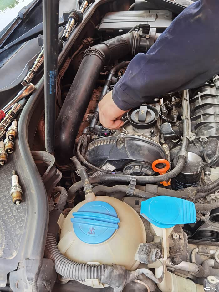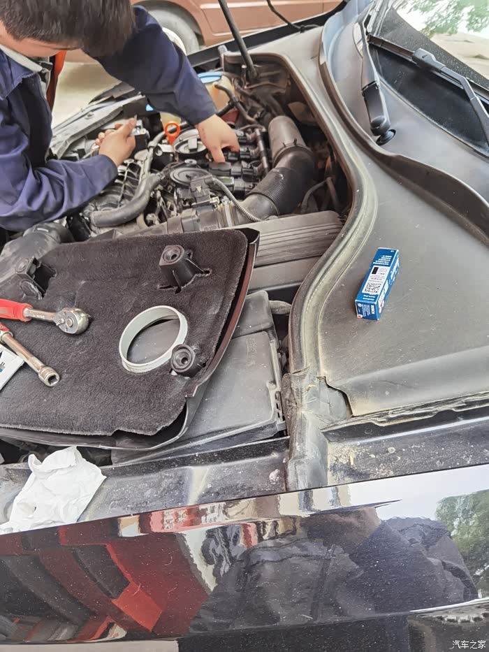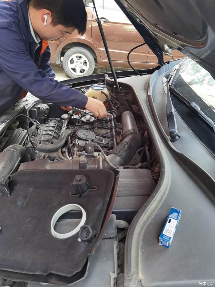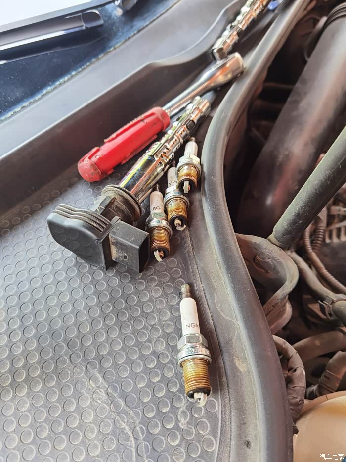 师傅是用带磁性的棒吸出火花塞的,其实车友们可以在网上买那种带有橡胶的内衬,可以轻易带出火花塞。