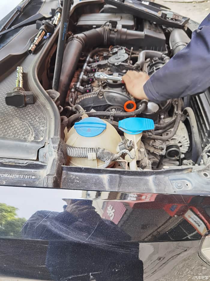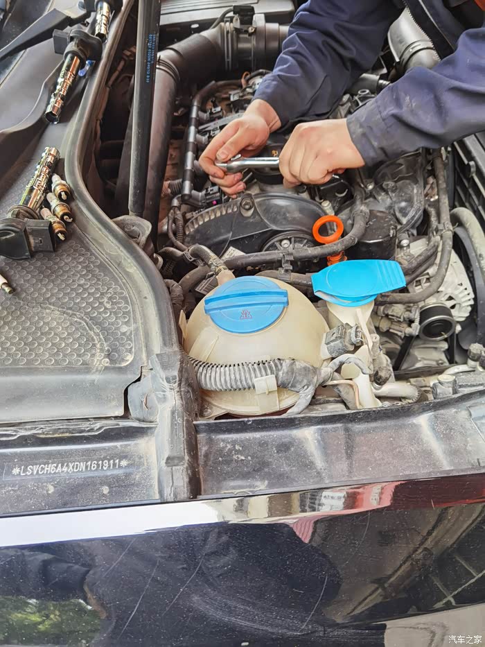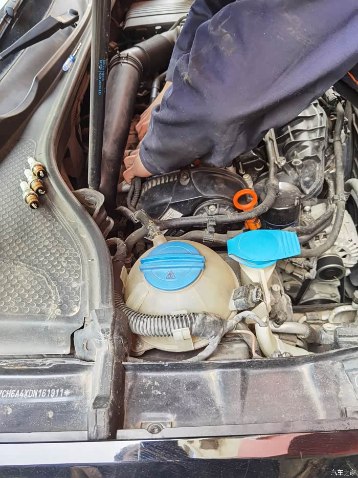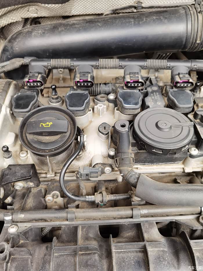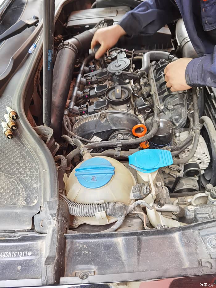 四个点火线圈整齐排列着,帕萨特火花塞比较好换,不需要拆其它的覆盖物。