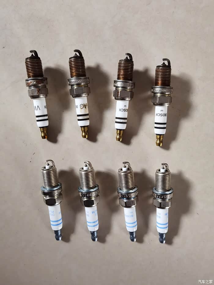 旧火花塞顶部有点灼烧的痕迹,间隙比正常,再跑1万应该没问题吧。