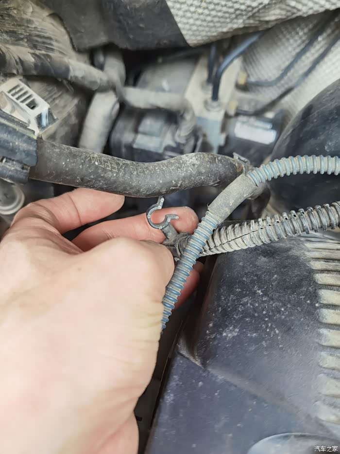 连着点火线圈的电线比较短,需要将左边的卡线的卡子拆下来。