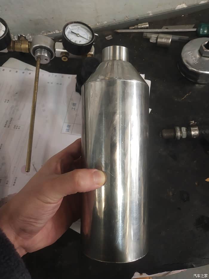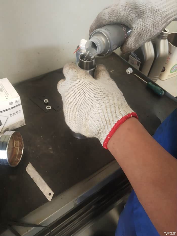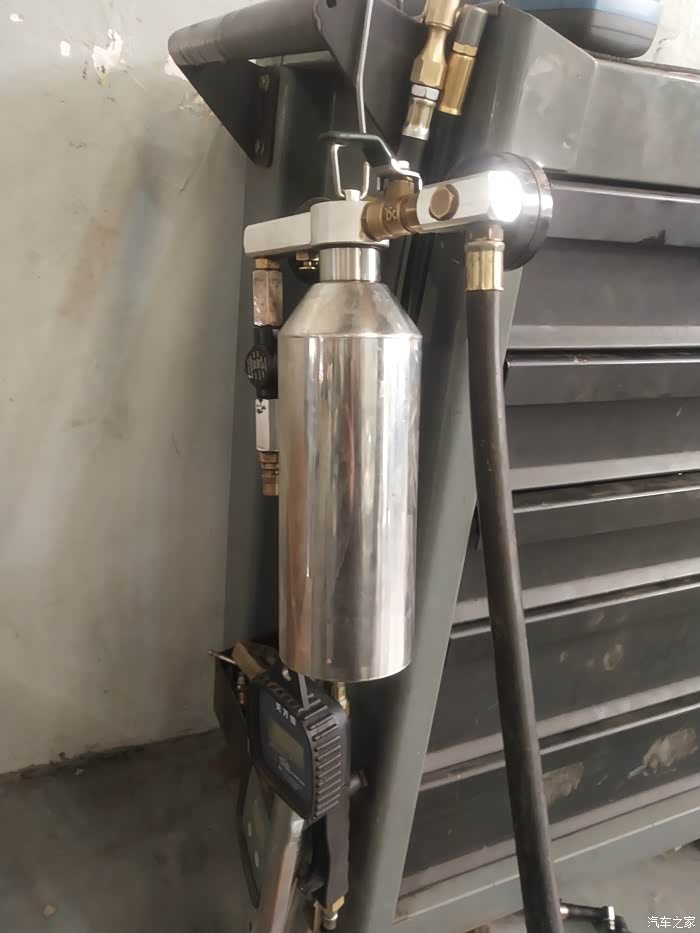 把喷油嘴清洗剂倒入不锈钢的小瓶中