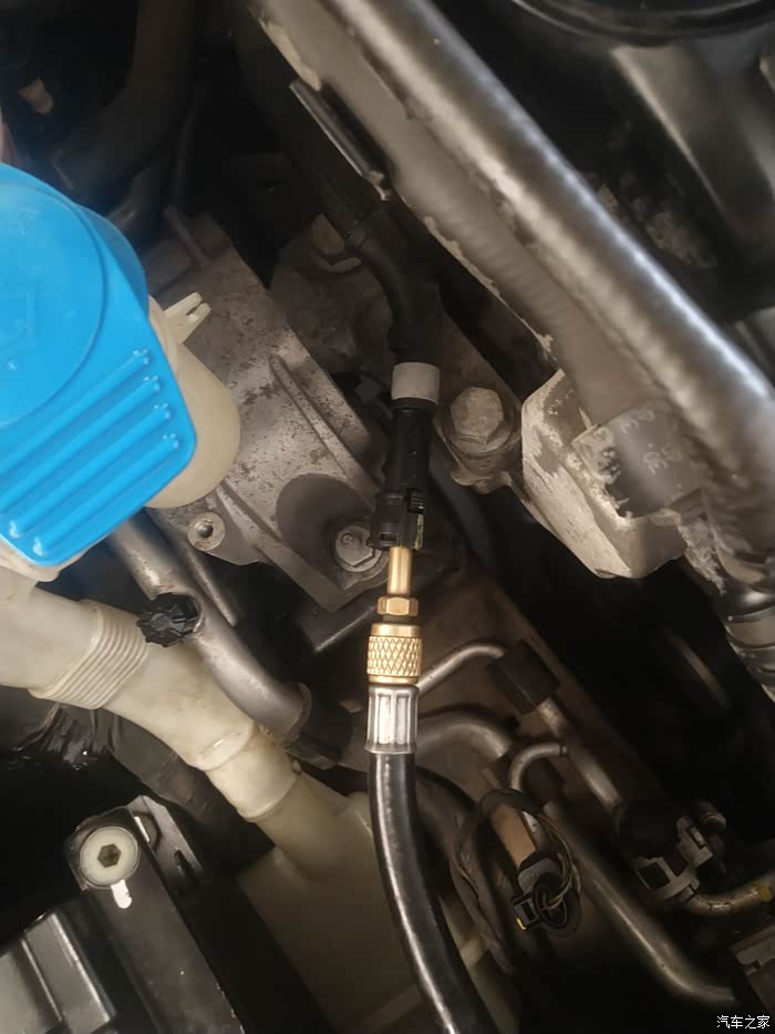 造成管不严实的原因是管路下面有破裂,找到卡扣,师傅又把破裂的一小节管子给减掉了,重新连接在一起,用卡扣固定好,试了一下,无泄漏