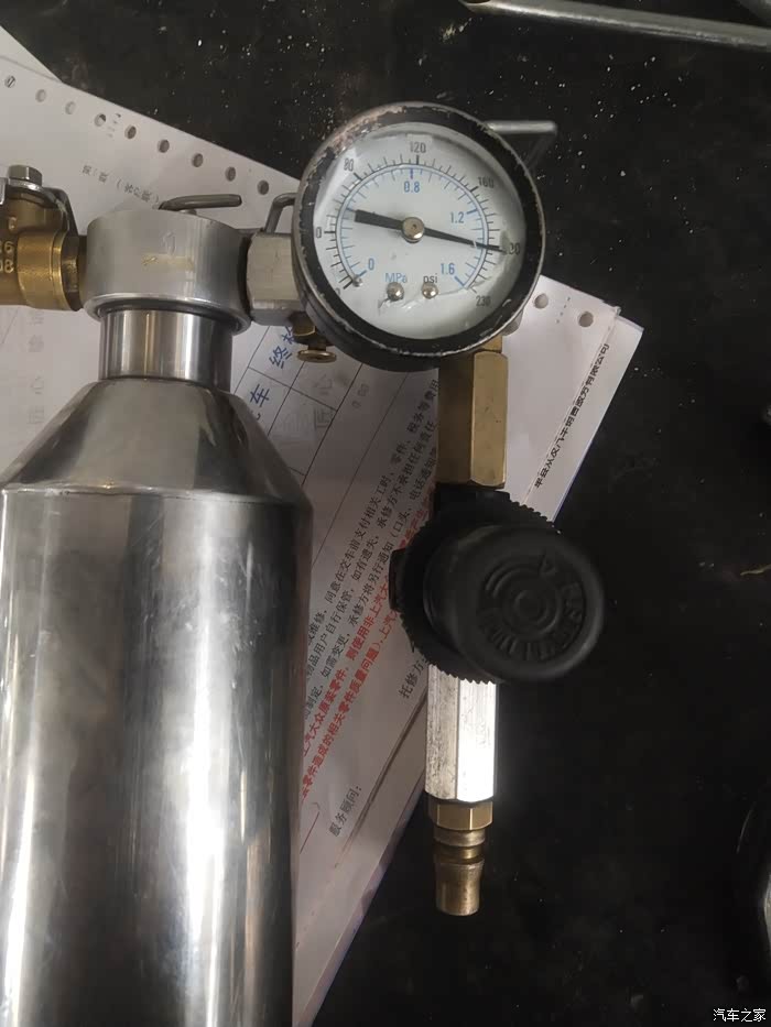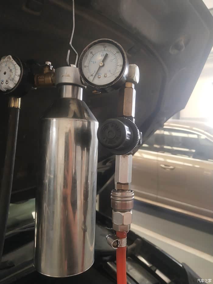 师傅在车内慢慢哄着油门,保持20秒左右后,再恢复怠速,如此反复做几次,清洗完毕,关闭油路手阀,打开喷油嘴清洗工具的泄压阀释放免拆洗工具的压力,开始拆卸工具,