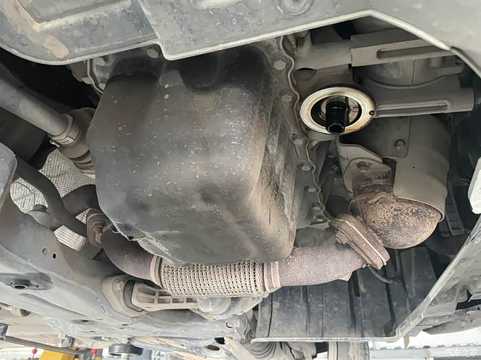 拧开机油滤芯先把旧油给放出来。