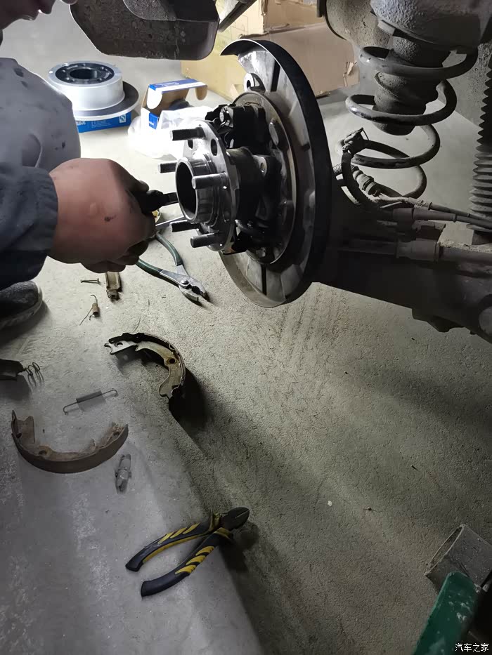 晚上我和我发小加班更换后刹车盘以及手刹摩擦片
