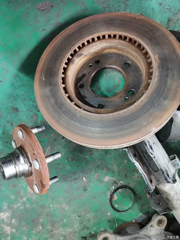 第二次撞车后修理厂说刹车抖动,只更换了刹车盘,当时是没事了,过了一段时间就开始抖了,这只是治标不治本,看这刹车盘的成色就不是什么好的配件,全是锈迹