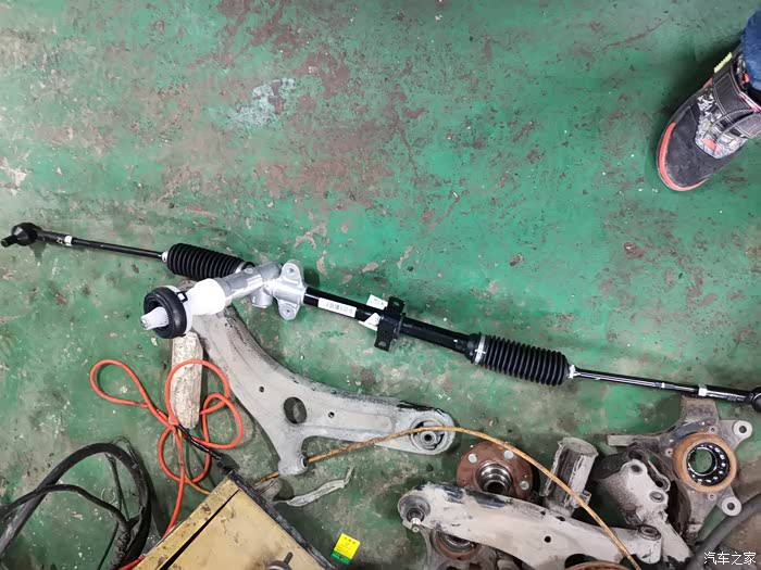 拆完悬挂后检查方向机,发现方向机防尘胶套脱开,导致方向机进水生锈,出现旷量,没说的,直接更换