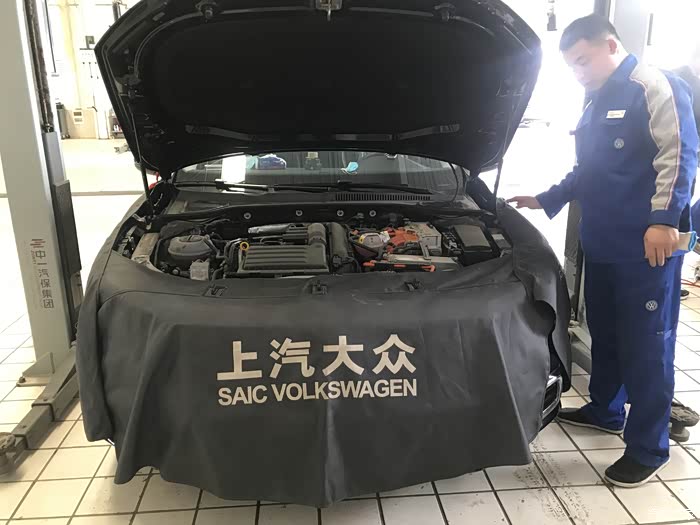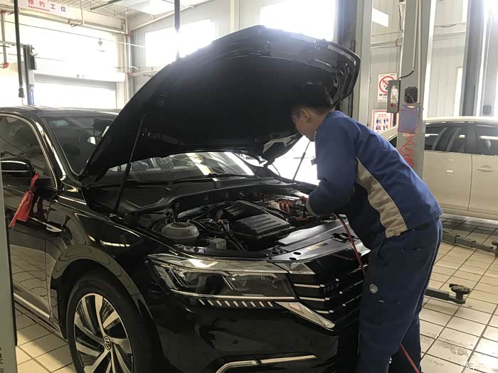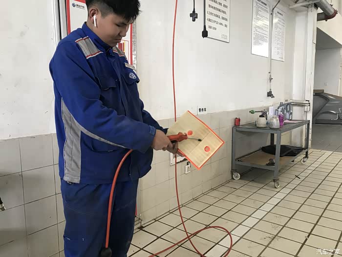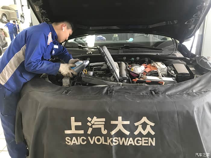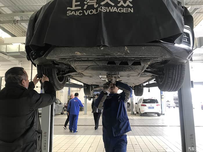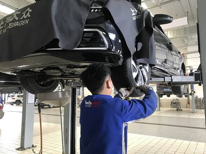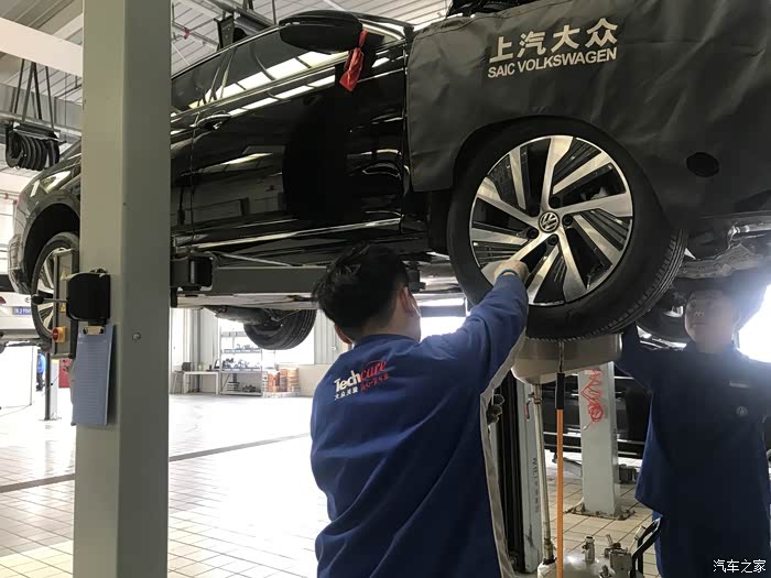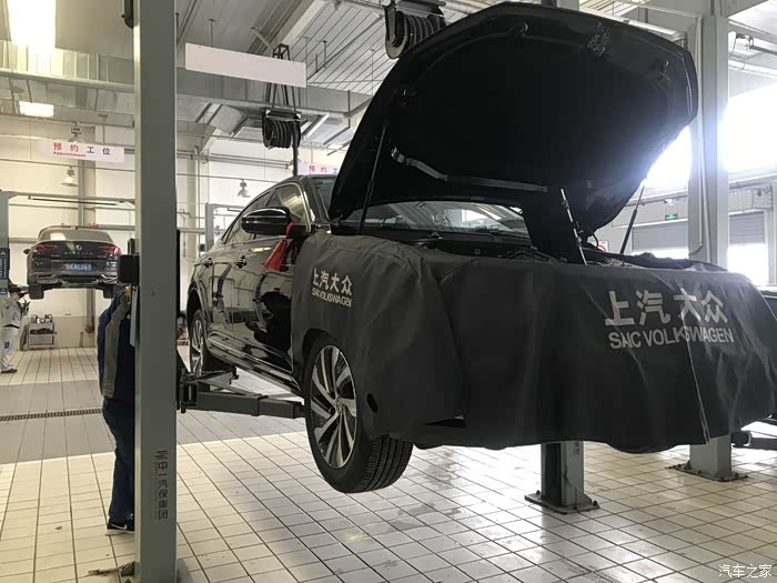 服务顾问热情接待,在做完登记确定了首保项目后,售后师傅把车开到了车间