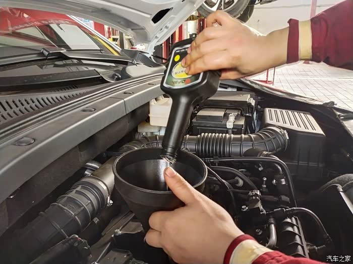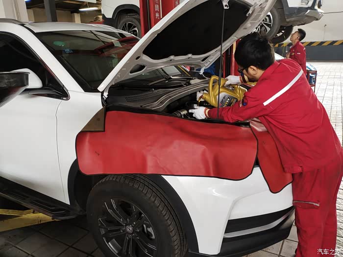 看着小哥把金灿灿的机油新加进去!