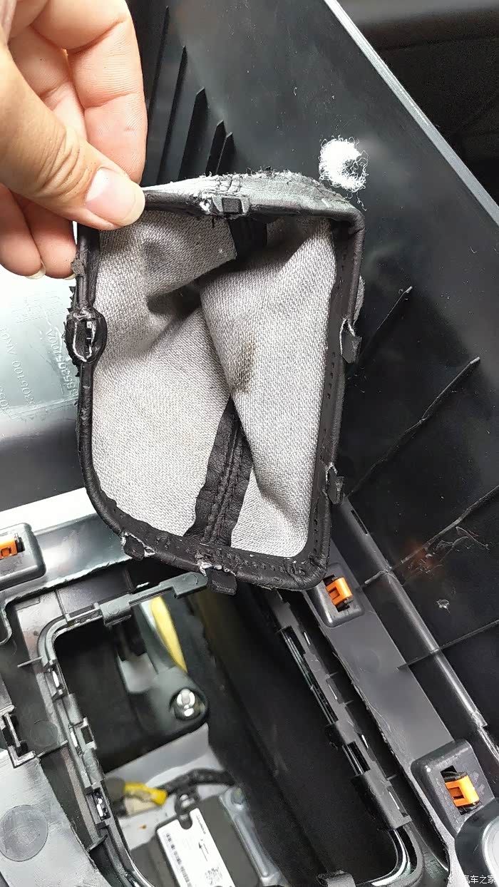 3、把副驾饰板撬开,放心撬吧一样只有卡扣固定。