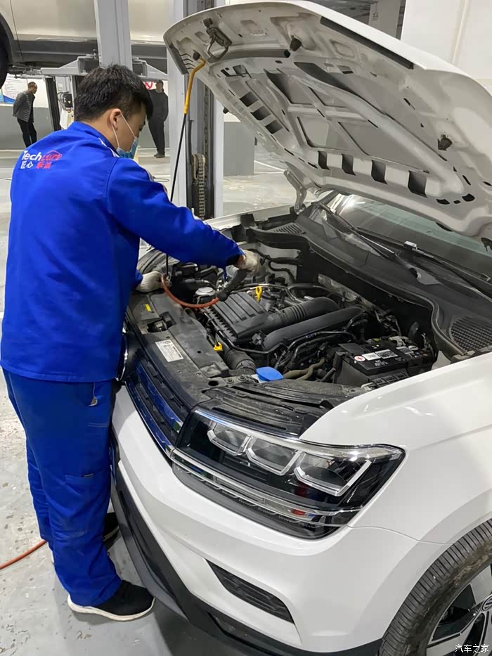 车开到店里后,我和工作人员说AC空调打开后出风口有股子臭味,他们建议我换掉空调滤芯和空气滤芯,首保和二保的时候都没换过,积分抵扣就行,免费,简直不要太爽。我闲着也没事,跟着车也到了车间,正好拍几张照片,顺便问问师傅点关于车辆的知识,老开车也得学着养车。