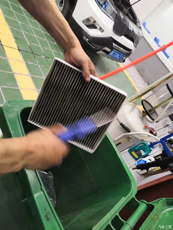 这个是空调滤芯器,车友如果你们要做保养的时候,可以把这个一换掉,因为这个过滤出来的空气是我们车内人呼吸的,在这里的话也跟大家说一声,尽量开车的时候开内循环