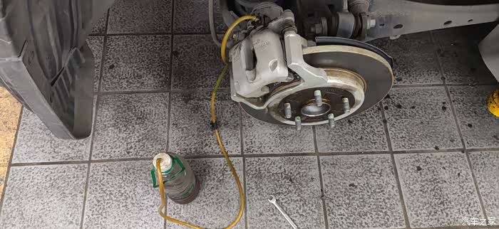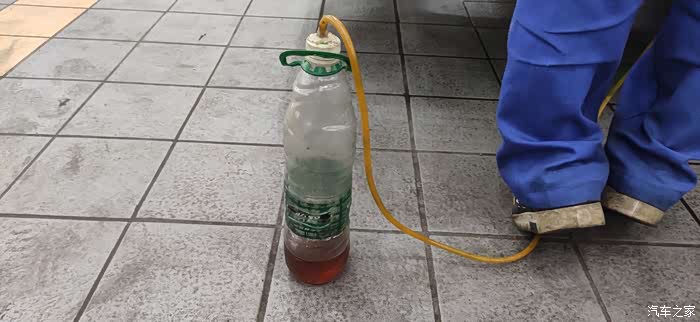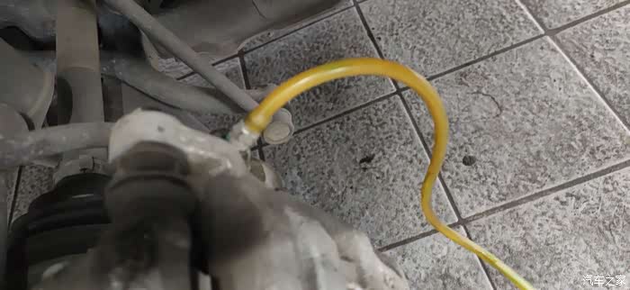 换完刹车油,我们可以看到滴下来的油已经变清,证明基本更换完毕