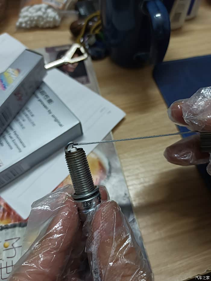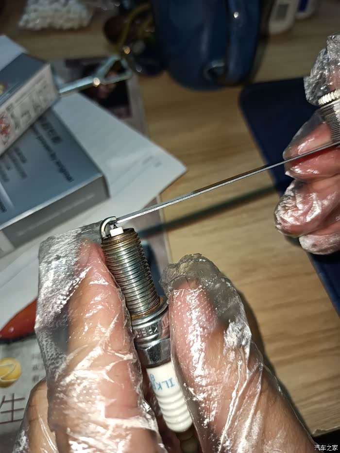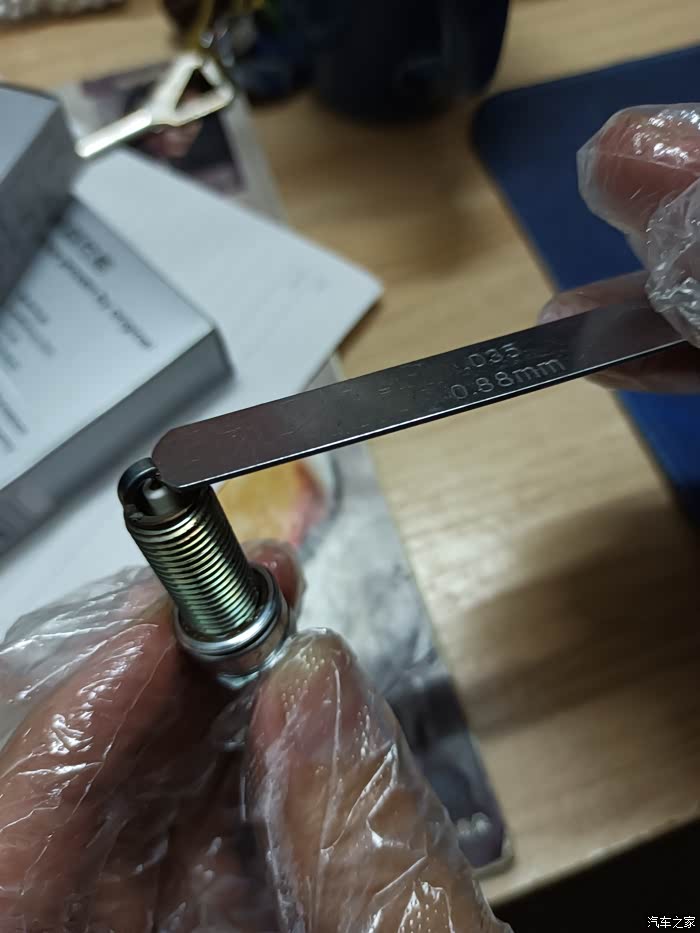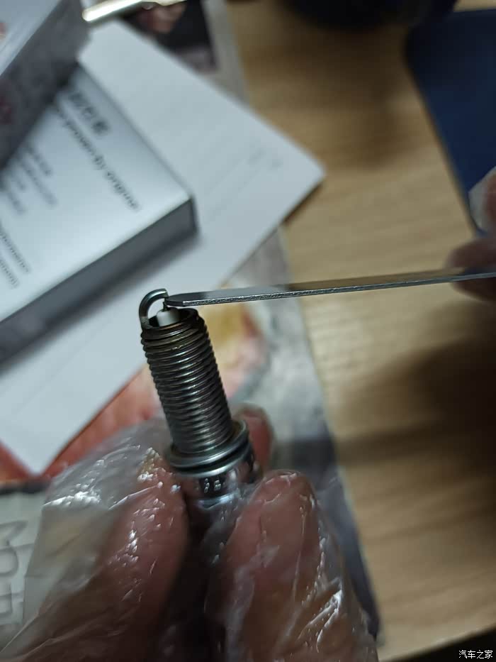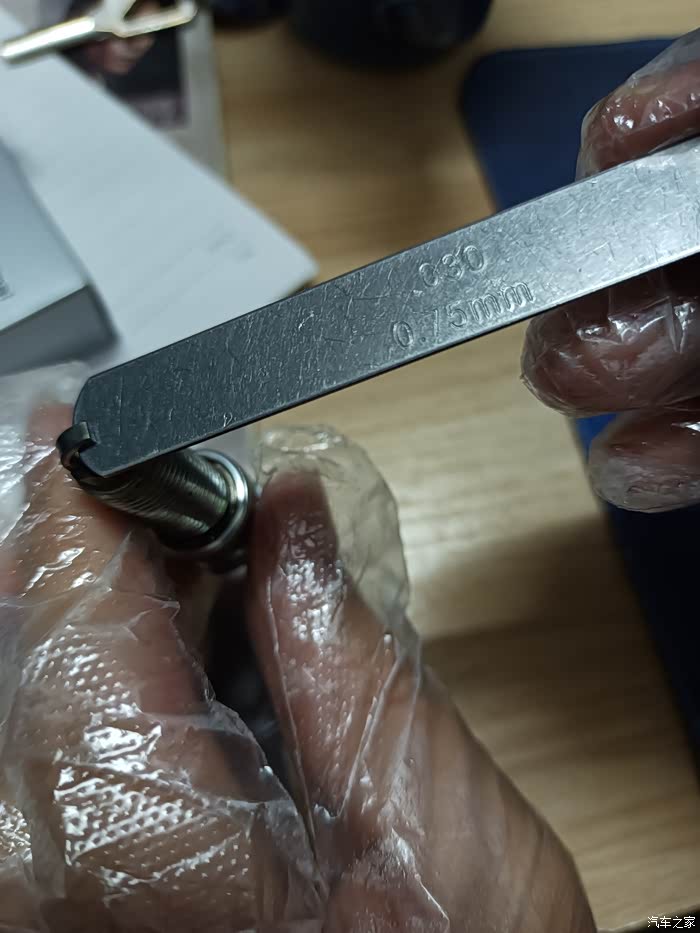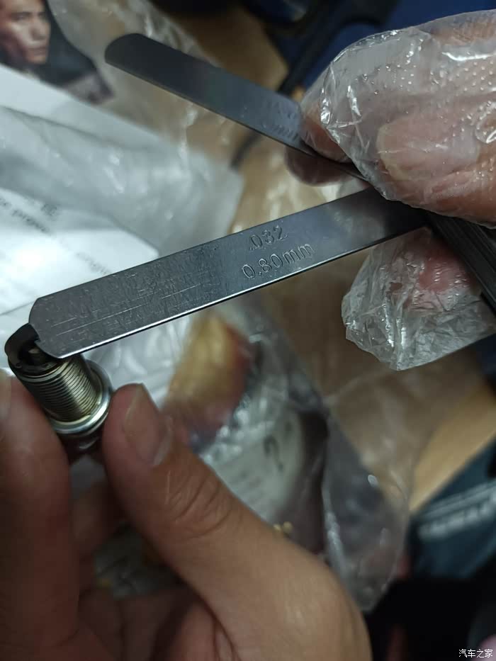测量新买的火花塞0.80mm尺条很艰难的仅能塞入一点点尺头