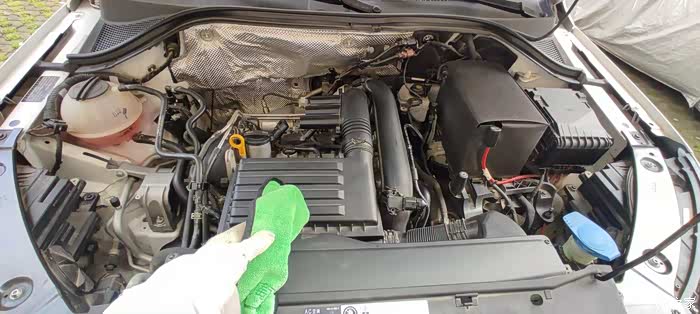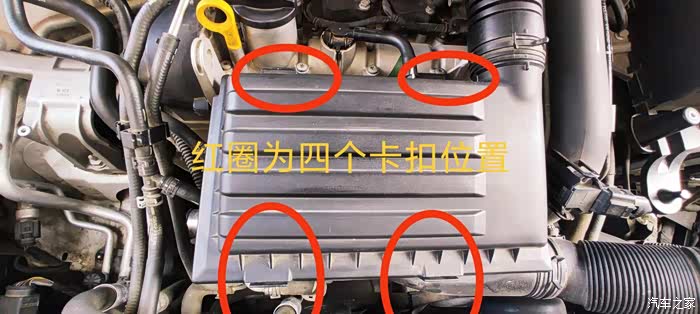 途观空气滤清器的更换非常简单,熟悉后四个卡扣一按压空气滤清器盒子就弹开,拉出原来的滤清器、对准孔洞放上新的空气滤清器、按压卡扣牢固就大功告成,简单而又方便。下面我把详细的操作步骤告诉车友。