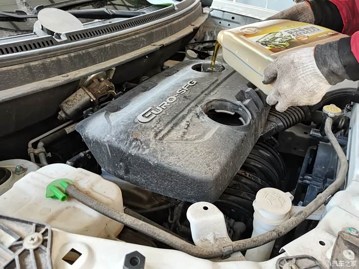 打开前引擎盖,先换上机油,这也是每次保养必不可少的项目。