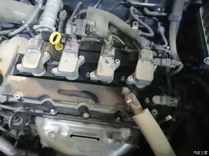 发动机上盖上很明显的油渍,如果不是把发动机护罩摘下来,还真是发现不了。