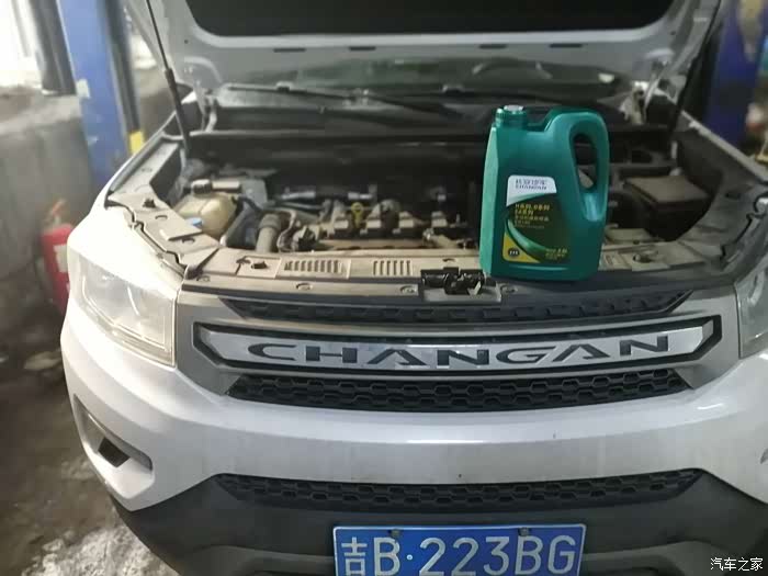 这次加的机油和往常的不一样,我要的嘉实多磁护没有了,只剩这款长城,他们管这个叫“母油”说长安车出厂时加的就是这个,我不太懂,但是冲着包装上的“长安汽车”我还是比较信的。
