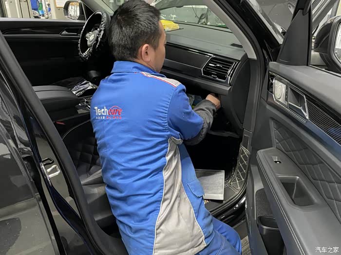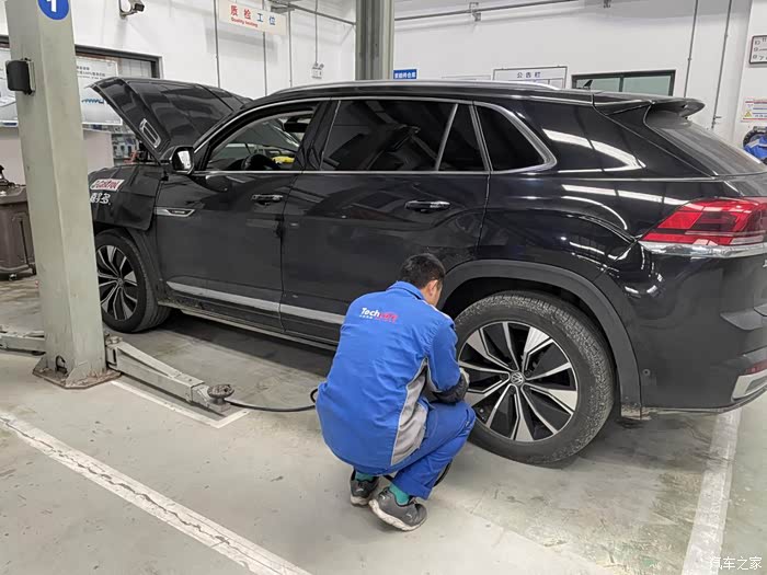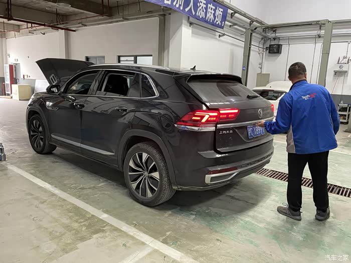全黑的内饰非常适合我,工地太脏了,如果是个米内饰我估计要哭死了。而且这后排空间领导坐了都说宽敞。好了途昂X这一年多也风里来雨里去的陪伴我,是时候犒劳一下它来做个大保健了。