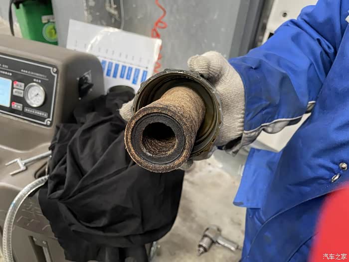 不用不知道,一看吓一跳,才两万多公里的车发动机里面就这么脏了。我全程都在旁边看这个仪器运作,我也搞明白了,这个比起以往的发动机清洗要好太多,以前都是到一瓶清洗剂进去,发动一会踩几脚油门就完事了,纯忽悠。