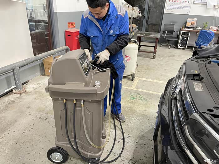 这个就是前面服务顾问和我推荐的新产品,发动机清洗机,听师傅说这机器是今天第一天开始使用,我是第一位用户,哈哈还挺幸运的,不知道我这白老鼠会不会吃亏呢?