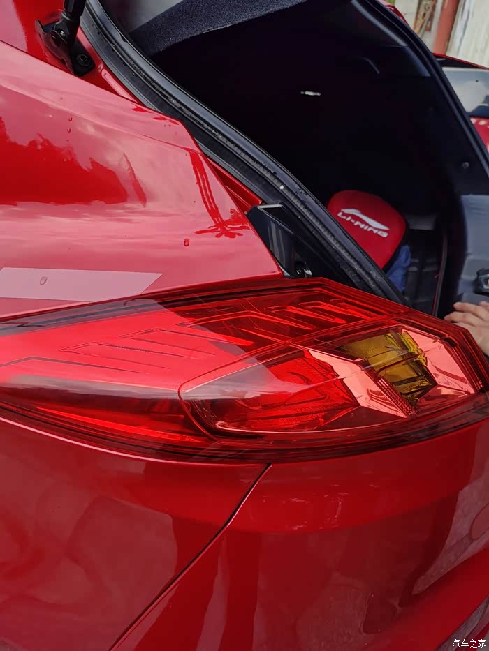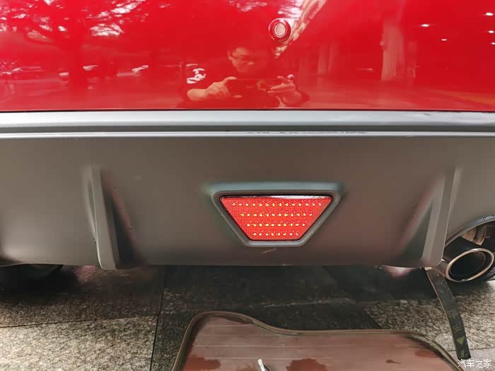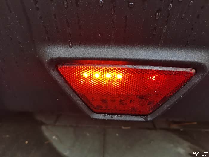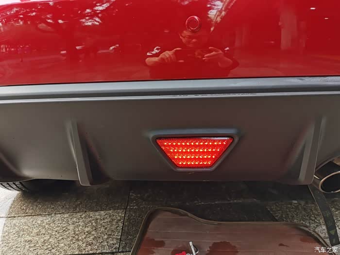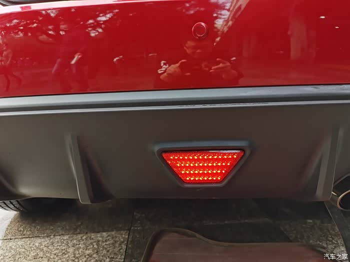 逸动XT在尾部扰流板上面有一个梯形的反光辩识,它外夜晚中能够反光提醒后车注意车距,同时它也有装饰作用,也增加了尾部运动范,个人觉得有点小遗憾的就是它不能点亮,如果可以点亮就完美PLUS了!