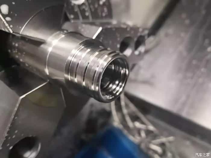 数控车床加工出整体轮毂,内部加工配套螺纹。