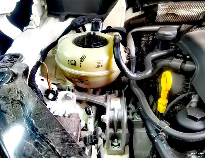 一个月前自己添加满的防冻液刚好到上限位置,现在已经少了稍许