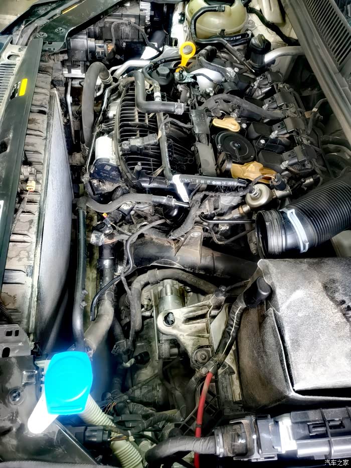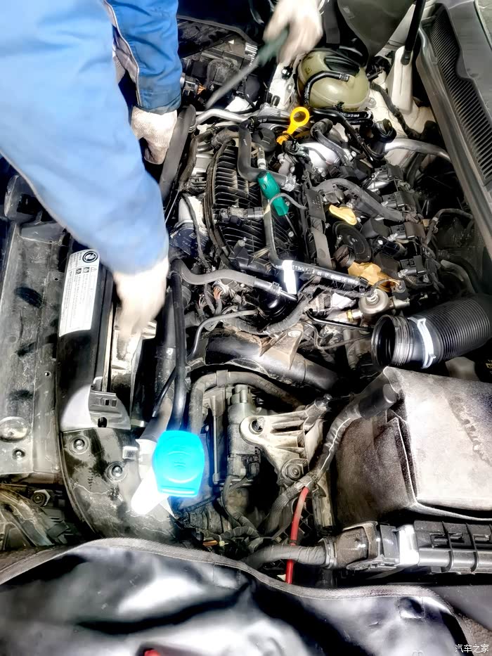 途安L车头本来就短,塞进EA888确实维修空间超小,要拆的水泵节温器就在节气门的下面