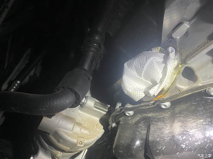 加油,用无纺布把加注口进行防护,以免机油外溅~不好清理~