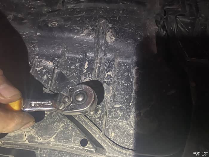 用扭力扳手+19#套筒,35牛米的扭矩校准螺栓,并检查油底壳螺栓是否漏油~