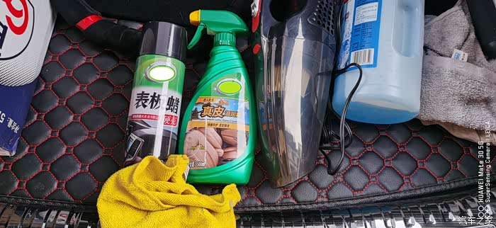这就是今天必备的三样东西:吸尘器、真皮滋润霜、表板蜡。他们的作用一会做介绍哈。由于今天洗了车,内饰已经在洗车店就已经用吸尘器吸过了,因此今天吸尘器的环节就略过了。