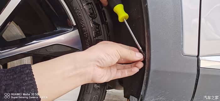 看。对准好了之后,把原来的那个按上在按照挡泥板的眼再使劲用螺丝在叶子板上钻一个眼拧进去。