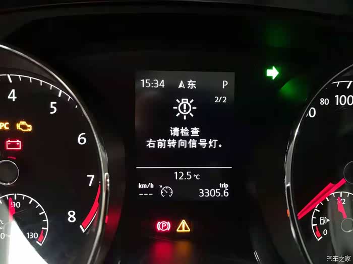 灯光是车辆的语言,有些灯光关乎行车安全。今天用车开右侧转向灯,突然发现转向指示灯快速闪烁,这表示右侧某个转向灯不亮了,仪表也提示检查右前转向灯。